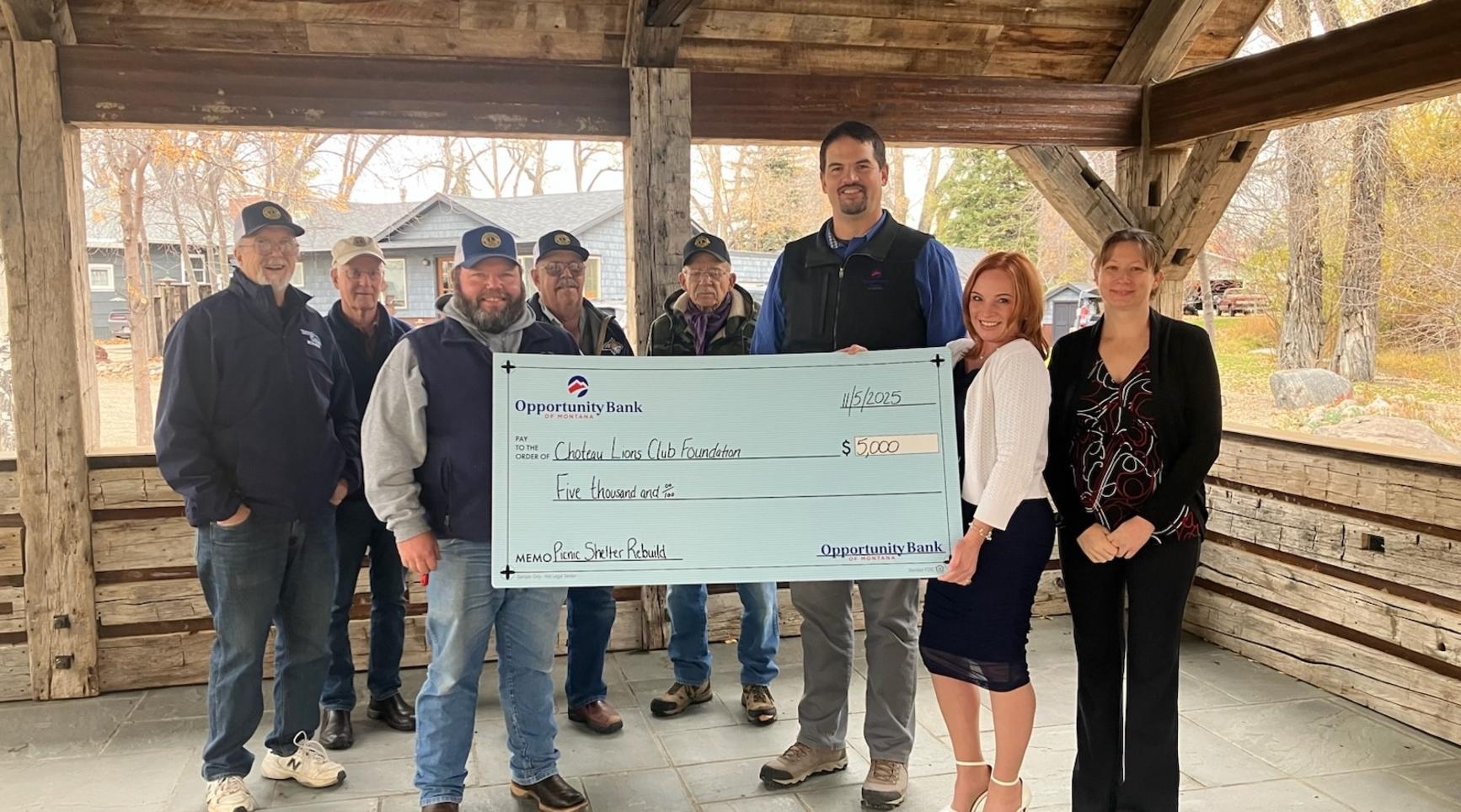 Opportunity Bank of Montana is proud to support the Choteau Lions Club Foundation with a $5,000 donation toward the rebuilding of the picnic shelter in Choteau City Park. This contribution reflects our ongoing commitment to strengthening the communities we serve.