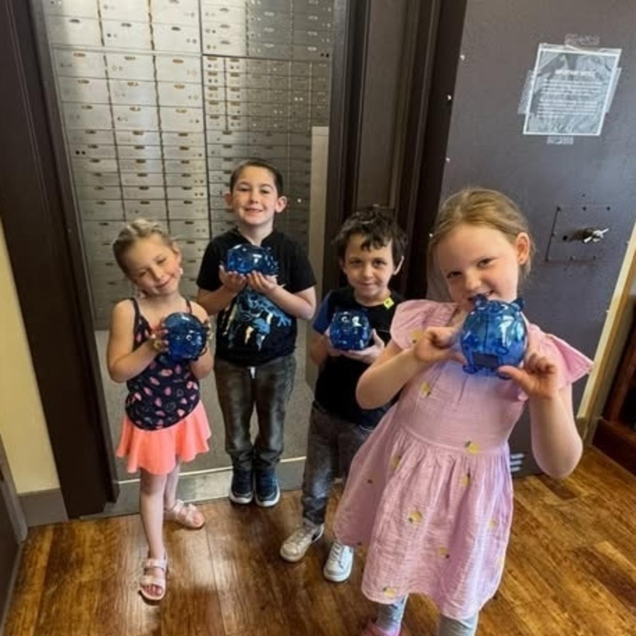 Our Dutton branch welcomed students from Dutton/Brady Public Schools for a behind-the-scenes tour. During their visit, students learned how the drive-through, vault, and night drop operates and participated in a scavenger hunt! Each student received a piggy bank and filled it with coins they found, helping kickstart their savings journey.